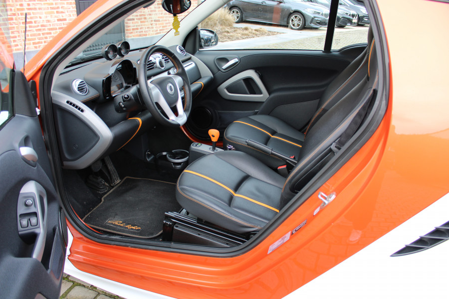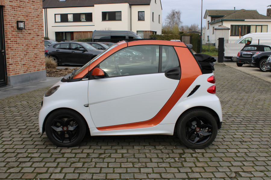 Mooie en meer dan perfect onderhouden Smart forTwo cabrio 1.0 MHD Softouch (52kw). Wagen van bwj 04/2016 en met slechts 41000km incl onderhoudshistoriek. Prachtige en zeldzame FLASHLIGHT edition met volgende opties: